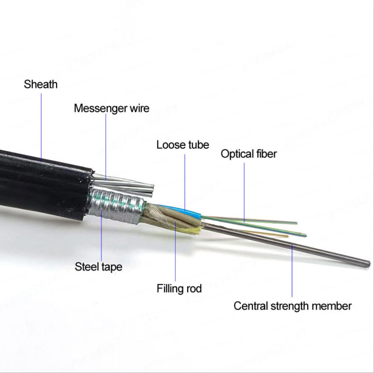 O cabo de fibra óptica GYTC8S é um cabo óptico de fibra óptica externo autossustentado típico. O elemento de resistência metálico é composto por fios encalhados, sendo a parte de suporte completada com uma bainha de PE para formar estruturas em forma de 8. Fita de aço corrugado blindada e bainha externa de PE proporcionando resistência ao esmagamento.